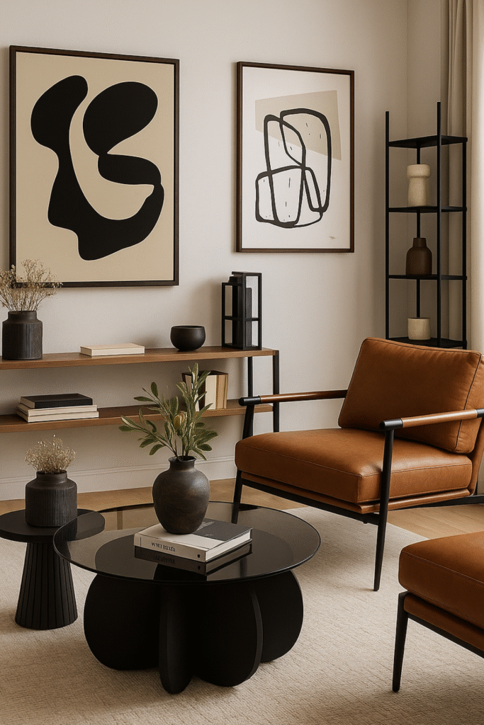 Japandi interiors rely on neutral yet expressive artwork to bring energy into the room without overwhelming the senses. Look for earth tones, soft black lines, and asymmetrical balance.